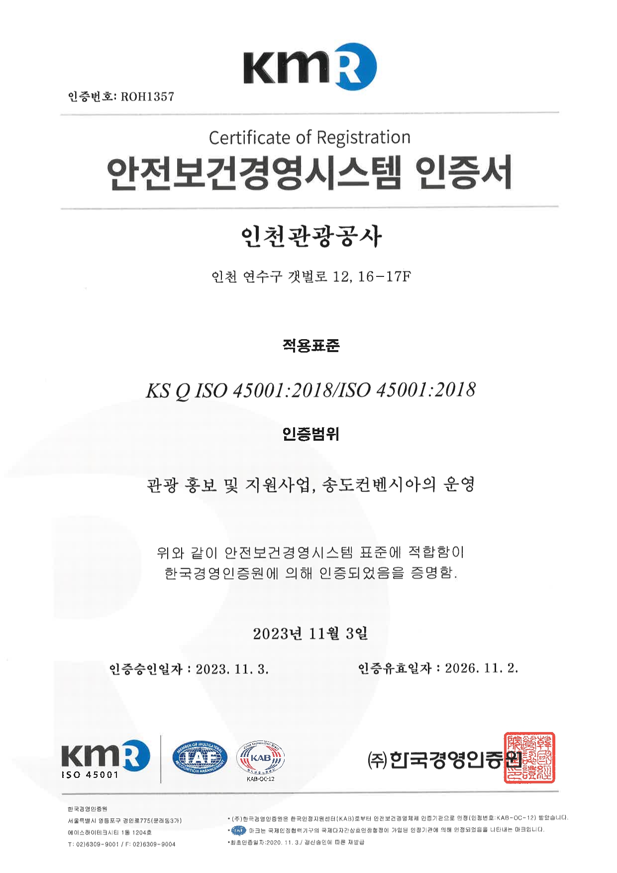 KmR ISO 45001 / 한국경영인증원